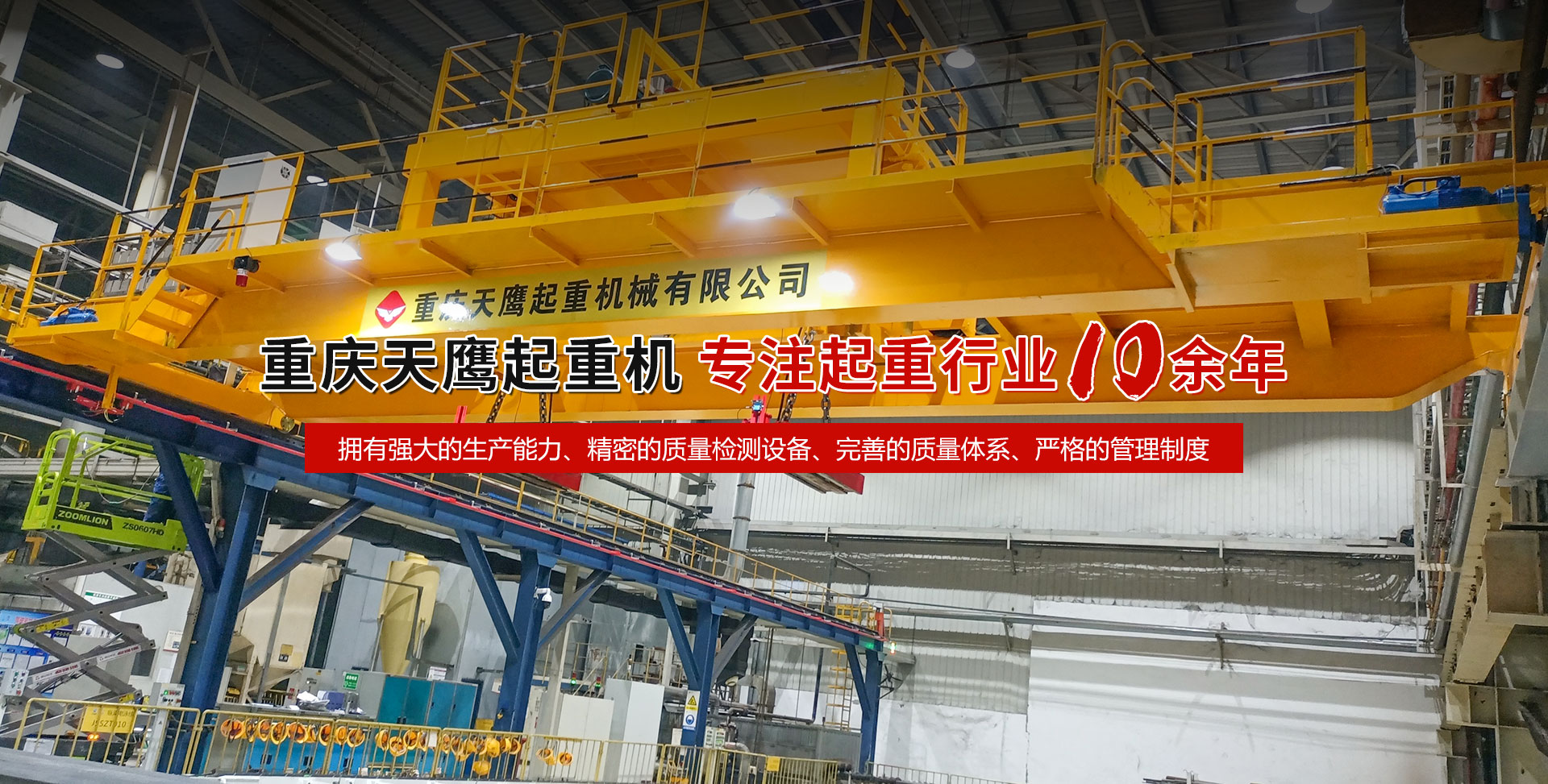 重慶天鷹起重機(jī)械有限公司成立于2014年,主營(yíng)起重機(jī)的銷售、安裝和維護(hù)等相關(guān)服務(wù)。中國(guó)重型機(jī)械工業(yè)協(xié)會(huì)員單位、為中國(guó)工程機(jī)械工業(yè)協(xié)會(huì)工程機(jī)械維修分會(huì)會(huì)員單位及西南地區(qū)起重機(jī)械定點(diǎn)安裝維修單位。具有國(guó)家質(zhì)量監(jiān)督檢疫總局頒發(fā)的特種設(shè)備安裝維修改造質(zhì)格證書。并率先通過了IS09001-2000質(zhì)量體系認(rèn)證。 公司注冊(cè)資金3000萬(wàn)元;廠房面積2萬(wàn)平方米;各種生產(chǎn)檢測(cè)設(shè)備50臺(tái)套,公司技術(shù)力量雄厚,聘請(qǐng)了國(guó)內(nèi)知名起重機(jī)專家、工程技術(shù)人員擔(dān)當(dāng)項(xiàng)目經(jīng)理、技術(shù)總工程師及顧問。現(xiàn)擁有員工100多人,其中工程技術(shù)人員12人。 主導(dǎo)產(chǎn)品為各類橋、門式起重機(jī)及輕小型起重設(shè)備,具備生產(chǎn)起重量200t及以下通用橋、門式起重機(jī)的能力,尤其在200t以下起重機(jī)產(chǎn)品上具備較強(qiáng)的市場(chǎng)競(jìng)爭(zhēng)力,為許多行業(yè)設(shè)計(jì)制造了技術(shù)含量高、技術(shù)性強(qiáng)的起重設(shè)備,許多產(chǎn)品在原設(shè)計(jì)標(biāo)準(zhǔn)上進(jìn)行了較大的改進(jìn)、優(yōu)化和創(chuàng)新;其中NH型系列電動(dòng)葫蘆、HD型電動(dòng)單梁處于國(guó)內(nèi)高水平..... 好的產(chǎn)品品質(zhì)需要由較高的裝備水平來保證,公司購(gòu)買了“大型數(shù)控落地鏜”、“數(shù)控切割機(jī)床”、“自調(diào)式焊接滾輪機(jī)”、“數(shù)顯液壓板料折彎?rùn)C(jī)”、“超大型數(shù)控臥式車床”、“數(shù)控液壓水平下調(diào)式三輥卷板機(jī)”、“單柱移動(dòng)式立式車床”“擁有用于單梁生產(chǎn)的全國(guó)一條拋丸噴漆烘干線、葫蘆噴漆烘干線和全國(guó)較大的100T葫蘆試驗(yàn)臺(tái)和檢測(cè)中心”等各種先進(jìn)的加工設(shè)備,新建廠房面積近2萬(wàn)平方米。 質(zhì)量是企業(yè)的生命,天鷹公司依據(jù)“ISO 9001國(guó)際質(zhì)量管理體系”標(biāo)準(zhǔn),制定并完善了公司的質(zhì)量管理體制。堅(jiān)持質(zhì)量體系的內(nèi)審和外審,將質(zhì)量管理工作落實(shí)到企業(yè)生產(chǎn)經(jīng)營(yíng)的全過程。 您的微笑,是天鷹永恒的追求;天鷹的服務(wù),是您首要的選擇!因?yàn)槲覀儓?jiān)信:“誠(chéng)信是本、質(zhì)量鑄就品牌”。為您服務(wù)是我們的榮耀,勤奮而進(jìn)取的天鷹人,時(shí)刻期盼著您的到來。